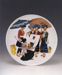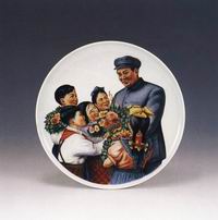 毛泽东与群众彩绘瓷挂盘