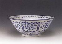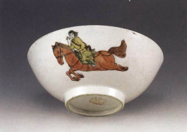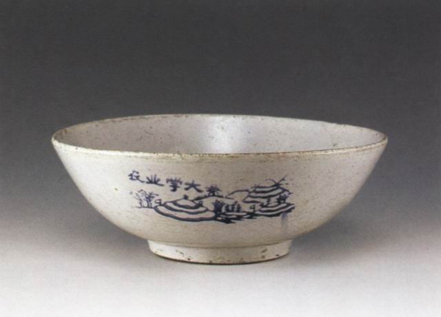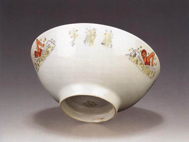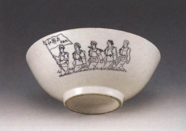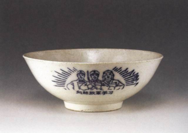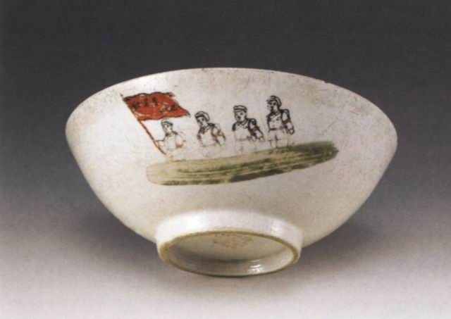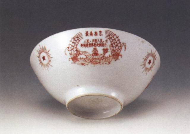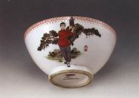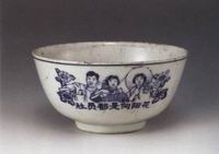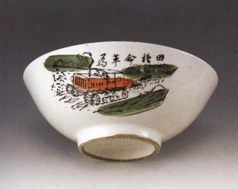 下农村彩绘瓷碗(左);“为革命种田”彩绘瓷碗(右) |
