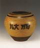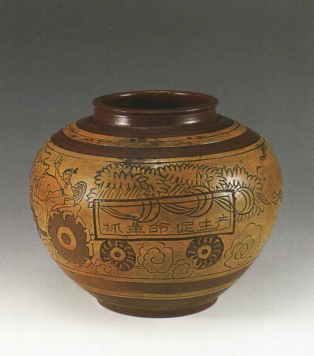 “抓革命促生产”黄釉褐花陶罐