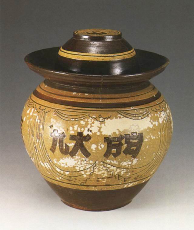 “打倒苏修”黄釉褐花陶坛