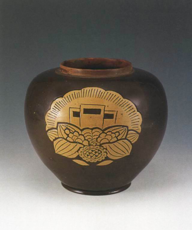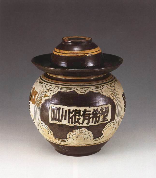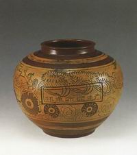 “老三篇”黑釉黄花陶罐