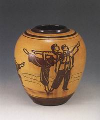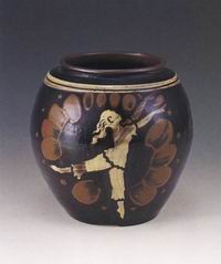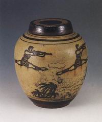 《白毛女》人物黑釉白花陶罐