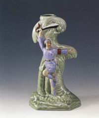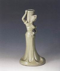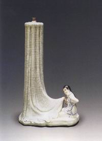 《白毛女》主人公喜儿彩绘瓷灯座 |