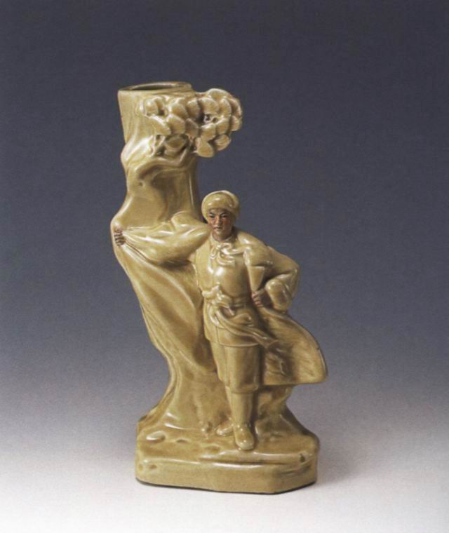 《智取威虎山》主人公扬子荣黄釉瓷灯座 |