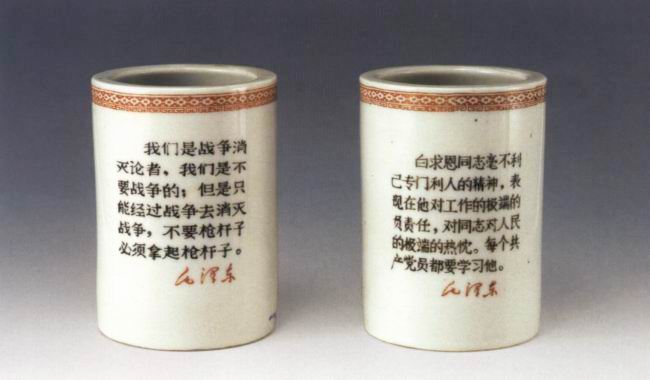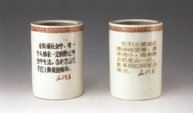 毛主席语录瓷笔筒(左)高11.5厘米;(右)高11.5厘米