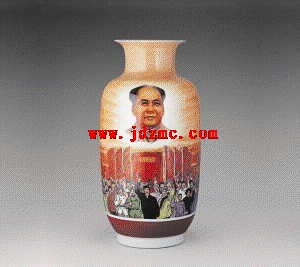 "文革"瓷,广义上是指"文革"时期产生的瓷器,但从表现内容上来看,"文革瓷"主要指有"文革"画面、"文革"语录或文字(诗词、手迹等)的瓷器,具有典型的"文革"题材特征。从瓷质来看,"文革"瓷又分陶瓷和搪瓷。"文革瓷"多为塑像和像章,还有大量的生活用品,如瓷盘、瓷碗、瓷杯、瓷壶、花瓶、笔筒等,尤以革命圣地图和毛泽东著作语录器皿最能刻画那个年代陶瓷艺术特征。