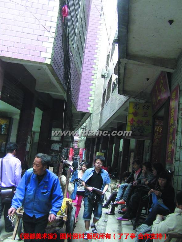 据饶国强介绍,樊家井之所以成为仿古瓷市场,与抚州七里岗瓷厂的解体有关。这家瓷厂原来就是做仿古瓷的,解体后几百工人中来了不少到景德镇,用以前的技术在这里做了起来,尔后形成了现有规模。