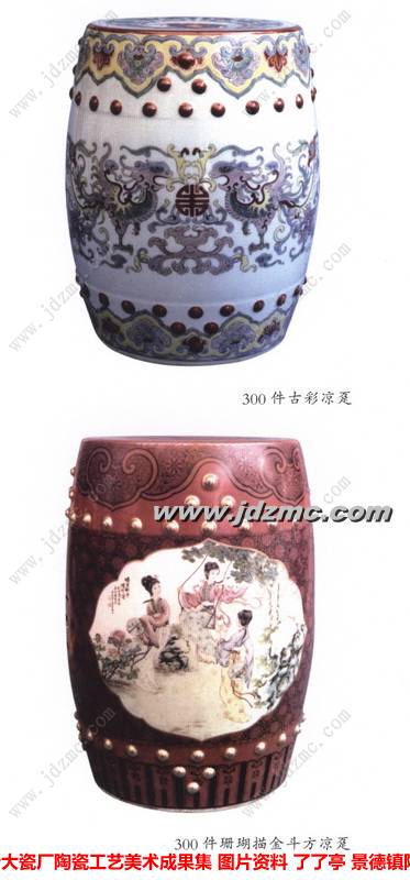1964年-1965年除保留圆器试验组工人制坯,琢器试验组两双草鞋外,全部手工改机压和注浆成型操作方式,特别是1965年增加雕塑瓷厂拨入压车一组和新成立镶器组三双草鞋生产四方瓶,年产量能完成226.23万件,比1963年55.58万件增加四倍多。