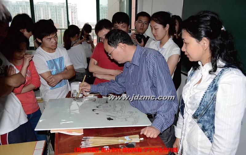 中心专职画家正在启音学校教聋哑学生学习南昌瓷板画