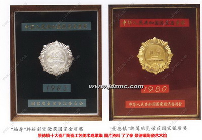 ●1960年2月10日景德镇市艺术瓷厂设计师章仕保吸取“景泰蓝”金线条的装饰特点,设计出一种新式饰瓷法“平面金线粉彩”。