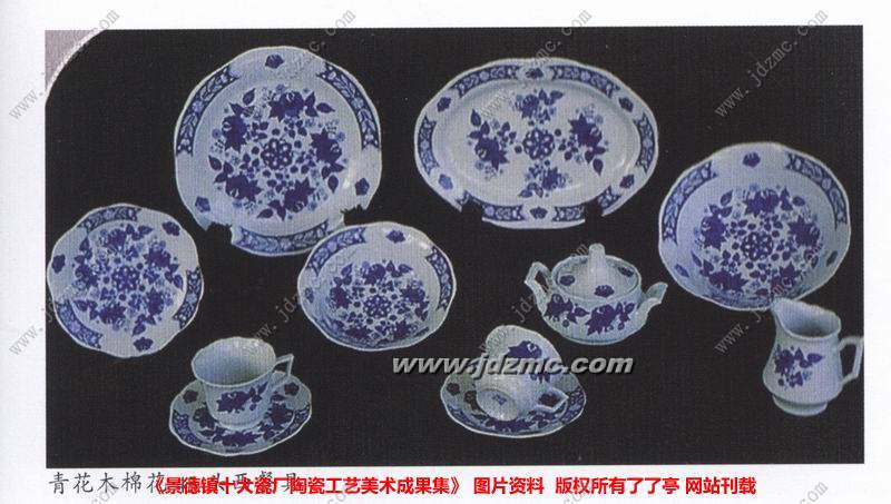 2、新产品、新器型、新画面、新技术不断推陈出新 华风瓷厂历任领导班子均认为产品创新是企业生命力之所在,是企业竞争之根本,因此企业上下十分注重产品的自主创新和更新换代,坚持一手抓好传统的青花梧桐、青花芙蓉,青花影青瓷的生产,力争产品质量达到或超过全市同类产品,并强化56头、26头中餐具和各式茶具,咖啡具的配套能力,不断以提高配套率增加产品附加值。一手抓新产品、新器型、新画面、新技术的研发和推广,先后设计和制作成功青花鲤鱼20头早餐具、青花蝴蝶玫瑰20头西餐具,青花木棉45头西餐具、日本和氏5头茶具和航空用瓷等100多个品种器型和画面。尤其是8头高白釉青花功夫茶具,以其胎薄晶莹通透,造型美观别致,高白釉与高雅青花相互衬托、交相辉映的独特效果,畅销闽桂粤市场,从而打破紫砂功夫茶具一枝独秀的垄断地位,成为景德镇最早生产的陶瓷功夫茶具,深受消费者的青睐,华风瓷厂一职工在广东曾以一套高白釉功夫茶具换回了两只重量不轻的金戒指。