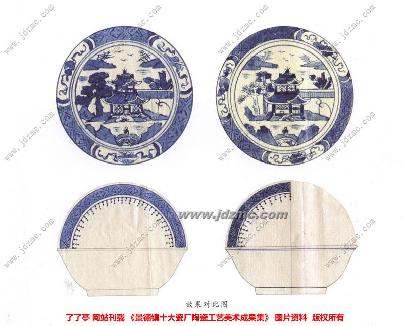 画面统一后,厂部又对制版工艺进行改革,将手工制版改为更为先进的照相制版,使青花纹样由网线进展为网点,大大提高了青花工艺质量。这样一来,青花梧桐画面更加细腻、生动、明丽、逼真。