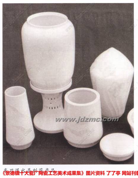 红星瓷厂研发的水晶刻花系列产品,是在影青瓷和玲珑瓷的基础上,突出两者优点的创新工艺,先在坯体上刻画出优美的图案,再加上施釉后烧成,使产品呈现若隐若现的朦胧美。对光透视,瓷内图案栩栩如生,有如水晶般的美感,因此在1981年被上级技术部门鉴定命名“水晶刻花”。红星瓷厂的水晶刻花,主要有皮灯、壁灯、餐具、文具等。后来又成功地用阴模滚压成型工艺生产出具有水晶刻花效果的餐具。该品种在原料上选用红星瓷厂特有的透光强瓷质细腻的高白泥、高白釉、玉青釉作为原料,以突出白度和透明度。制作上采用全手工成型,尤其是灯具均达到“薄如纸、白如玉”的效果,花面创作上以花鸟、鱼虾为主,显得淡雅清新,赏心悦目。