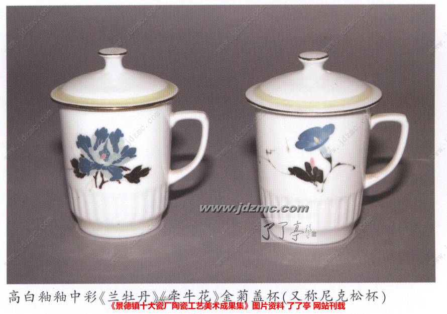 20世纪70年代初,为民瓷厂开发了金菊杯、直纹杯等高档盖杯类新产品。由秦锡麟大师设计的器型,袁世湖绘制的釉中彩“兰牡丹金菊盖杯”在1972年被国家有关部门选为美国总统尼克松首次访华的接待用瓷。从此,金菊杯被人们称为“尼克松杯”广为流传。