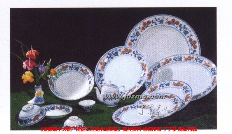 该所还承担着国家用瓷和礼品瓷的研制任务。国家用瓷有:邓小平用瓷青花斗彩1 8头海水茶具,中共中央政治局用瓷80件青花山水5头文具和梧桐、洋莲茶杯,外交部用瓷50件牡花莲子瓶,北京新桥饭店用瓷枫叶斗彩餐具等。礼品瓷有:青花松鹤瓶,青花石榴瓶,青花斗彩伯乐相马瓶,青花龙凤琵琶瓶,青花天球瓶,青花文成公主瓶,青花牡丹20件瓶,青花满莲50件瓶以及青花鱼草餐具,20头西餐具等10多个品种。这些制作精美的瓷器仅20世纪80年代中期就20余次作为国家礼品由中央政府、中央领导及有关部委赠送给外国元首、政要,且深受这些元首和政要的赞誉。