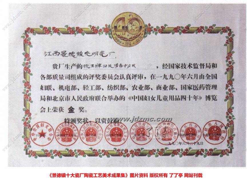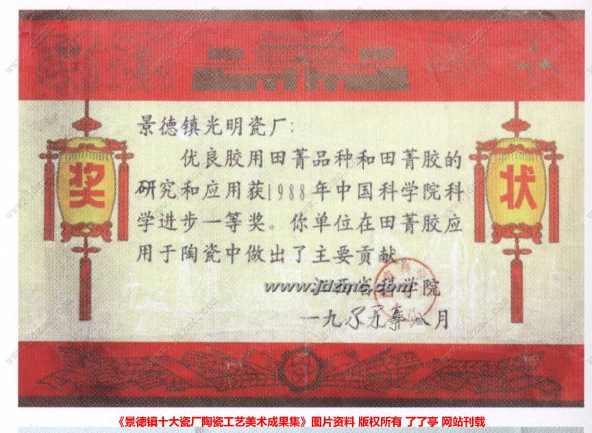 技术管理和技术改造方面。从1979年开始,在全厂推行全面质量管理,1988年推行全面质量管理获省级二级合格证书,1989年获计量工作国家二级复查验收合格证书。1988年获轻工业部质量管理奖。工艺管理上,1980年开始逐步把大件异型产品如鱼盘、鸭碗、四方生菜碗等由注浆成型改造为机压成型。1981年生产的195头西餐具由30多个品种配套而成,当时来说是空前的。1982年开展技术攻关,对链式干燥器进行探索,采用多孔喷射干燥法,使其适应了青花玲珑瓷的生产。1984年对工艺标准进行了全面修订。1988年制订了玲珑打眼机的工艺标准。从1980年至1990年,该厂连续进行了“六五”“七五”技术改造。 “六五”技术改造完成了轻工业部和省市安排的24个项目的改造,用于技术改造的资金为274万元。“六五”技术改造加快了青花玲珑瓷产品的升级换代,扩大了生产规模,提高了产品的质量和档次, “七五”技术 改造共完成技改资金1348万元,涉及的工程有原 料精制、成型,引进德国煤气隧道窑、彩绘包装和二条电烤花滚道窑。项目于1990年全面竣工投产并通过了国家验收,被评为2个优良工程和5 个合格工程,成为陶瓷系统技改工作的一面红旗。、’特别是引进德国的煤气隧道窑是当时国内陶瓷行业现代化程度最高的焙烧瓷器的隧道窑,被轻工业部列为首批引进窑样板工程,而且开创了使用第四代新能源的先河。