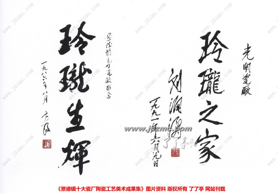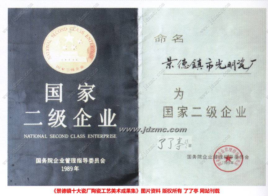 这时的景德镇市光明瓷厂成为一颗耀眼的明星,越来越吸引外界的眼球,其管理经验在有关会议上进行介绍,报纸、杂志经常刊登。1990年10月15日,国务院总理李鹏来江西视察期间,主持召开工业座谈会,该厂作为全省十家企业之一参加座谈会并向总理汇报了工作。当时,景德镇市光明瓷厂作为涉外单位之一,经常接待境内外贵宾和游客的参观。当时的中央领导,省、部领导也经常来厂考察指导工作。如邓小平、汪东兴、刘澜涛、郝建秀、毛致用、江渭清、舒圣佑、狄生、陈士能、朱治宏、钟起煌、钱家铭、梁凯轩等等。方毅和刘澜涛还分别题词:“玲珑生辉”,“玲珑之家”。该厂生产的青花玲珑产品先后70次作为党和国家领导人或以政府名义馈赠给国外元首、政府首脑或政府高级官员。