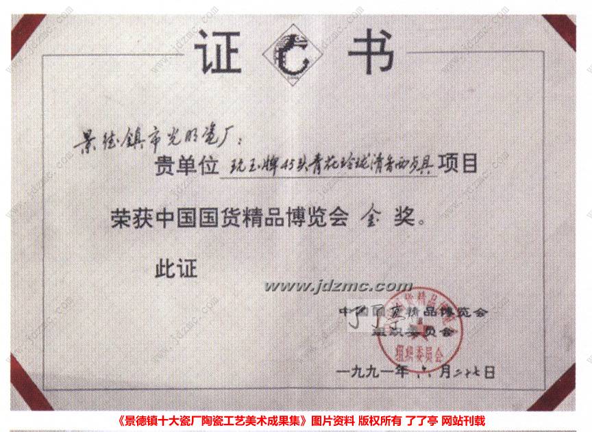 1992年初,邓小平同志发表了“南巡”讲话,国家又颁布了《全民所有制工业企业转换经营机制条例》。国有工业企业逐步迈向市场。由于景德镇市光明瓷厂之前进行了一些内部改革,管理基础比较扎实,再加上有好的产品——青花玲珑瓷,好的职工队伍。故在进入市场经济的头4年,即1992-1995 年,过得还比较平稳。比如1992年产值、销售额、实现利税分别达3117.24万元、3068.07万元、403.72 万元,分别比上年增长5.36qo、5.90%、5.020/0,以后的这三项指标都保持不增不减相对平稳状态。其主要工作体现在抓改革、抓市场、抓新产品开发、抓技术改造、抓精神文明建设。