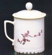 White Glazed Porcelain Cup with Painting of Chairman Mao's Poem
