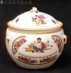 White Glazed Porcelain Jar with Decoration of Tiemei Holding Red Lamp,an episoed of the ��Tale of Red Lamp��