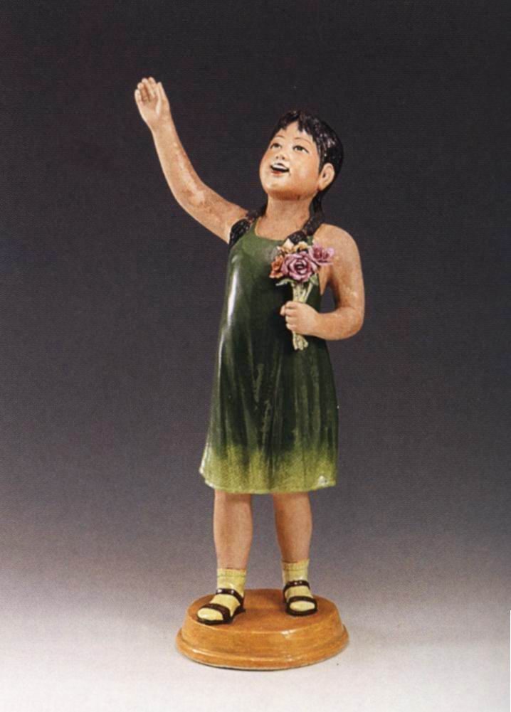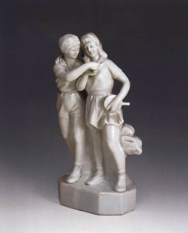 女体操运动员彩瓷塑像 舞剑女彩瓷塑像 中美“乒乓外交”女球员白釉瓷塑像 长发女白釉瓷塑像 女青年扇舞彩瓷塑像 女青年持伞彩瓷塑像 夫妻扭秧歌彩瓷塑像 新疆少女彩瓷塑像 朝鲜族女青年顶罐彩瓷塑像 少数民族儿童读书彩瓷塑像 朝鲜族少女弹伽耶琴彩瓷塑像 少女骑骆驼彩瓷塑像 母与子德化窖白釉瓷塑像 老人与儿童德化窖白釉瓷塑像 “小工农兵”白釉瓷塑像 儿童点爆竹彩瓷塑像 手握鲜花的少女彩瓷塑像 少先队除“四害”彩瓷塑像 儿童洗衣彩瓷塑像 儿童托大穗黄釉瓷塑像