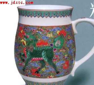 粉彩麒麟啤酒杯 秦锡麟上世纪八十年代创作精品
