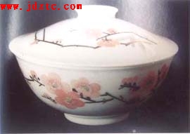 五、从烧制工艺上来鉴别。“7501瓷”入窑时,是装在特制的匣钵中隔火烧制的,瓷胎的烧制温度要达到1400°C。在高温下隔火烧制的瓷胎瓷化彻底,无论光洁度、硬度、洁白度都能达到很高水平。而现代仿品都是用气窑无匣烧制,温度无法达到1400°C。而且在升温速度、水气蒸发、有机物溢出等几个环节上,都与真“毛瓷”有较大差距,所以不可能有真“毛瓷”那样的胎质,绘画、颜色也不可能有相得益彰的效果。尤其明显的是,釉上彩的水点梅花器物,是在胎体烧成后在瓷胎上再绘制花卉,然后二次入窑烧成的。在选择成品瓷胎时,凡胎上有薄厚不匀或其他瑕疵的,不可能再将其绘上花卉图案,制成成品。因此,凡发现瓷胎有毛病的釉上彩瓷器,可以一律定为伪品。