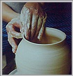 | 在快速转动着的轮子上,将手探进柔软的粘土里,开洞。借助螺旋运动的惯力,让粘土向外扩展、向上推升,形成环形墙体……这就是拉坯! 拉坯成型是陶瓷发展到一定阶段出现的较为先进的成型工艺,是陶瓷历史上一个重大的革命。它不仅提高了工作效率,而且用这种方法制作的器物更完美、精致,同时可以拉塑出很大型的作品。新石器时代的仰韶文化已经出现了慢轮辅助成型,后来发展到快轮,从此拉坯以其不可替代的优势成为陶瓷成型工艺的主流! 用拉坯的方法可以制作圆形、弧型等浑圆的造型,比如盘子、碗、罐子等等,它的特点是作品挺拔、规整,器物的表面会留下一道道旋转的纹路。现代陶艺甚至通过对拉坯成型的作品进行切割,再重组成一件新作品;或者通过对拉坯成型的作品进行扭曲、楼空、挤压之后再拼合,创作出新的,富有特色的作品,包括器皿、容器、雕塑。 看别人拉坯也许觉得很新鲜、过痛,但事实卜初学者要学习技坯技术必须经过一个较长的学习和实践过程,才能达到得心应手、应用自如的境界。初学者要有耐心,持之以恒,按部就班地练习,一定能掌握好拉坯成型这种制陶法. | ||