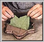 1.摘取一个叶纹比较清晰的树叶,放到事先做好的泥板上。 |