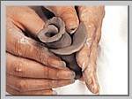2.手掌不断捏压使泥团没有空气。