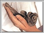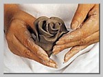 5.像卷席子一样将泥片卷起来,把一端捏实成为花枝,一端成为花心。