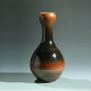蒜头瓶是瓷瓶器型之一,仿自于青铜蒜头壶而成,口部似蒜头,长颈,腹部像油锤,圈足。宋代时,蒜头瓶已有制作,明代时景德镇窑有过青花、五彩、粉彩以及各种单色釉品种的蒜头瓶。在明代嘉靖年间,蒜头瓶曾流行肩部堆贴蟠螭装饰。因制作年代的不同,瓶式各有变化,诸多装饰形式都形成各代的时代风格。右图的五彩花卉龙凤纹蒜头瓶{明代作品},现藏于台湾鸿禧美术馆,体形高大优美,色泽浓艳但不俗气,主体纹饰为龙凤纹,周围辅以五彩花卉,疏密有致,生动雅致。