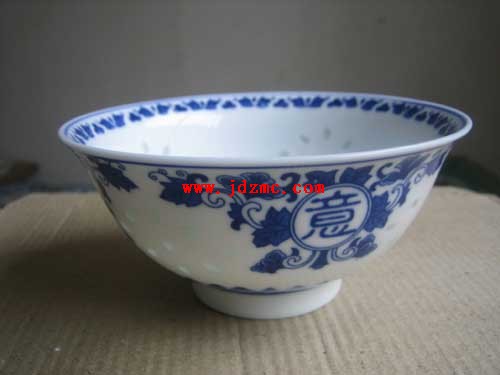 玲珑瓷也有很悠久的历史, 所以也是景德镇的四大传统名瓷之一。玲珑瓷往往配以青花图案, 叫青花玲珑瓷。这种瓷器既有镂雕艺术,又有青花特色, 既呈古朴、又显清新。解放后的玲珑瓷得到迅速发展,产品除中西餐具、茶具、酒具、咖啡具、文具等日用瓷外, 又精制成各种花瓶、各式灯具等陈设瓷。