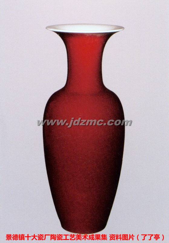 郎窑红简称郎红,又称宝石红,外国多称牛血红。产于清康熙年间郎廷极督陶的御窑厂(即郎窑)。是铜红釉中色彩最为鲜艳的一种。釉面明如镜、赤如血、润如玉、光泽夺目。红色由上而下逐渐加深,有较粗开片,流动性大,脱口。郎窑红釉以铜花、滑石子、二灰、含水石、玻璃粉、陈湾、长石等配制,用捺釉法上釉,在柴窑拉背二至四路,二、三脱重四以上窑位,1300qC左右还原气氛烧成。(了了亭 资讯,本文刊载于- 景德镇十大瓷厂陶瓷工艺美术成果集)