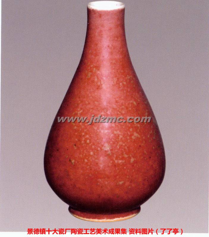 美人醉始于明代中叶御器厂。釉面细嫩滋润,清淡的红色中带有若隐若现的绿色苔点,酷似美女醉酒时的面额。美人醉烧成时色泽变化较大,根据色调不同又称豇豆红、孩儿面、桃花片。美人醉釉以铜花、含水石、碳酸钡、烧料、玻璃粉、石头釉、石英、珊瑚等配制,用吹釉法三次施于生坯上,在柴窑拉背三至七路,三脱重二窑位,1280C左右还原气氛烧成。 (了了亭 资讯,本文刊载于- 景德镇十大瓷厂陶瓷工艺美术成果集)
