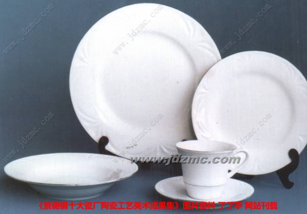 红星瓷厂的艺人们从20世纪70年代开始涉足半刀泥,在继承影青刻花工艺的基础上,综合刻花与玲珑之长,进行创新发展出一种突出材质美、工艺美的装饰工艺。制作时先在坯胎上刻出凹进去的图案,再用透明的玉青釉填满刻好的花纹,然后将整个坯胎施一层白釉,再入窑烧成。成瓷后,纹饰与胎釉融为一体,厚薄不同的凹纹通过玉青釉显现,花纹玲珑剔透柔和秀美,宛如水晶状,因此被技术部门鉴定为半刀泥水晶刻花新工艺。红星瓷厂的半刀泥水晶刻花对原料选取,坯体制作,刻画,烧成各环节均严格把关。原料选取高白泥,早期高白泥中由于加入了临川手选滑石子,既保持了景瓷还原焰烧成“白里泛青”的特色,又增加了透明性。后期因手选滑石子原料贫乏,新开发出45 号高白泥作为原料,增加了坯体白度。在坯体制作过程中,拉坯和利坯均有高手手工制作器型,壁灯、皮灯、薄碗、文具都薄如蝉翼,轻如浮云。刻画过程中,美术家们用刻刀在坯体上刻画出山水、人物、花鸟、虫鱼各种图案,经施釉后烧成只见玉石般的瓷器内,画面若隐若现,给人一种朦胧美,对光一照,画面清晰可见,工艺效果让人叹为观止。红星瓷厂的技术人员在水晶刻花的基础上,又研制出阴模滚花工艺。在阴模上制作各种图案,压坯时滚压出凹纹,达到手工半刀泥刻花的效果,这一工艺制出水晶刻花中西餐具。