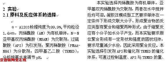 | 凝胶注模成型工艺制备高强度的氧化铝陶瓷 | |||||