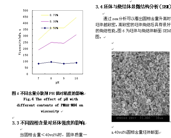 凝胶注模成型工艺制备高强度的氧化铝陶瓷 摘 要: 本文以氧化铝陶瓷为例,研究探讨了凝胶注模成型工艺中制备低粘度、高固相含量浓悬浮体的关键技术;讨论分散剂因素对粘度的影响;不同固相含量对坯体的强度的影响。