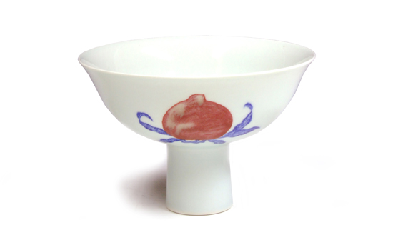 釉里红烧制关键难点是在所用色料和在瓷器烧成过程中色料的发色好坏上。为了讲清此难点还得从色料谈起,釉里红的着色剂是用氧化铜(CuO)配成色料,其氧化铜的纯度较高,而其它着色氧化物的含量很少,否则就会影响铜红的颜色。为了能做到这一点,当时景德镇的传统制作工艺方法是采用紫铜,放在高温中煅烧使其氧化,表面产生黑色氧化铜薄层并取下,它被景德镇称之为“铜花”。此氧化铜不仅纯度高,而且比较脆,易于粉碎研磨加工成细粉,它就便于在素坯上绘画装饰。有人可能会问,既然氧化铜为黑色粉体,用它装饰瓷器在烧成后为什么会变成红色?究其原因主要是瓷器在高温烧成工程中,花纹处的色料会与玻璃体釉发生高温化学反应,氧化铜会变成铜离子状态存在于釉下玻璃体的结构中,而且在不同的烧成气氛下铜离子会发生变价,例如瓷器在氧化气氛下烧成,铜离子价态不变,仍处于二价状态(Cu++),器上花纹会呈绿色;而在强还原气氛下烧成,则二价铜离子会被还原成一价铜离子(Cu+)和金属铜胶体粒子(Cu0),这时花纹处颜色就会变成红色,而且还原气氛强弱控制稍有不同,花纹颜色就会大变。同时色料对烧成温度的高低也非常敏感,如果烧成温度过高,釉就会流动,而且铜离子容易扩散和挥发,则花纹就会模糊和颜色较淡。而当烧成温度低了一些,氧化铜色料只有少量被溶解于玻璃釉中,虽然也是在强还原气氛下烧成,但花纹也难显较鲜的红色。由此可见釉里红瓷器的烧成技术是较难掌握的,只有当非常合适的烧成温度和较重的还原气氛下才能使铜红花纹形成,并呈较纯正的鲜红色。 |