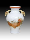 当我把作品烧制出来后, 一看, 呵!与原来工整到底的作品对比, 后者更显示出了其鲜活感, 效果、 味道还真不错。细腻处衬出了豪放, “意笔”处衬出了细工的“功夫” 。 你看整个作品, 采用了“工”与“写”的结合;“细”与“放”的合璧,两种技法的结合使用交相辉映,相得益彰, 从而使该作品最终跳出了传统一工到底的格式框框, 展现在人们眼前的作品是细腻、 豪放、鲜活灵气感十足,业内人士观后予以高度评价,称其极具观赏性和收藏价值。
