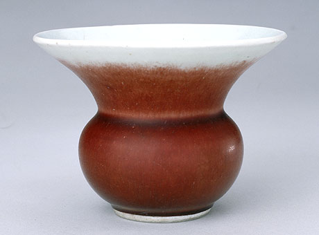 早在汉代,铅绿釉在陶器上就使用过,铅绿釉就是铜在低温氧化焰中的呈色.高温铜红最早出现在唐代的长沙窑,另在唐长沙窑和宋代均窑中还作纹饰使用过.真正烧成浑然一色的铜红釉瓷器始于元代的景德镇窑,釉色为暗红色.它为后世铜红釉的发展打下了基础.到明早期的永乐、宣德年间景德镇窑才真正烧成通体鲜红的高温铜红釉瓷器.可是到明代中期这种烧造技术就失传了.直到圆园园多年前的清代康熙朝,在郎窑中才又成功地烧制出高温铜红釉瓷器.