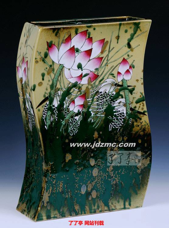 3、叠加法:那一种骨子较硬的单色釉,平涂或吹后再在其上面,运用随意涂画法,涂上结晶釉或流动(较软)的花釉类,便可产生各种绘画创作需要的色彩。