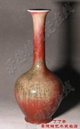 颜色釉的色彩虽然鲜艳动人,耀人眉目,但在生产上却有很大的困难:即烧成很不稳定,要想得到一件毫无瑕疵而令人满意的成品是异常 困难的,即使是完全相同的配方施以厚度相同的色釉,如果窑位放置略有不同,烧成后也会出现几乎不同的颜色效果。 从此可以看出,颜色釉在技术、手法上要求是比较高的,其颜色的呈色和品种也是变幻莫测而繁多的。然而在众多的颜色釉瓷中,最为名 贵的是祭红、美人醉和三阳开泰等。 祭红是中国传统陶瓷产品的佼佼者。是高温颜色釉中的一颗明珠,清项亢汴(历代名词图谱)记道:“祭红,其色艳若朱霞,真万代名瓷之首冠也!”其釉面特色是红不刺目,鲜而不过,釉面不流,裂纹不出,它的别名繁多,有称“霁红”,有称“鸡红”或“极红”,其实那是一个 品种。由于都是以氧化铜着色而且是一次烧成,外观也相差不太远,所以人们往往错把“郎窑红”当“祭红”。自古以来,“祭红”是最难烧造的品种之一。但是,仔细观察“祭红”与“郎窑红”无论从色调风格、釉面特征、烧成温度均有显著的区别。如:“郎窑红”呈色极为鲜红,透明度强,具有较大张裂纹,器件上部略有流釉现象。而“祭红”的红色则较深沉,釉面无裂纹,无浮光也没有流淌现象,口底都有灯蕊边。今天烧成一件合作的“祭红”瓷尚且这样困难,更何况科学技术十分落后的古代了。可是,古人在配制“祭红”时,真可谓不惜工本,象珊瑚、玛瑙、寒冰石、珠子、烧料,有的配方甚至真的掺入黄金,可烧成率仍然很低,即使有了好的配方如果烧成条件不行,也常有满窑瓷器皆成废品之例,因为“祭红”的烧成仍是一门“火的艺术”。在今天,“祭红”仍有不少新的研究课题有待技术工作者去研究解决。  美人醉是桃花片中色调最艳丽的一种。它的色调与钧红、祭红、郎窑红及其它铜红相反,在绝大多数情况下,它不是深红色而是一种浅红色,颇似桃花及海棠色调,所以又称它为桃花片及海棠红。此外,还有称美人霁及美人祭的,其实都是同一品种。正如,有人曾用洪亮吉咏苹果诗向来描述美人醉的釉色美感“绿如春水初生日,红似朝霞欲上时”。由于烧成上特别困难,美人醉的样品多为小件器皿,虽然如此,但是真正好的样品无论是古代或现在烧制的都不多见。就如清人龚轼在(景德镇陶歌)上记述的“官古窑成重霁红,最难全美费良工,霜天晴尽精心合,一样搏烧百不同”。