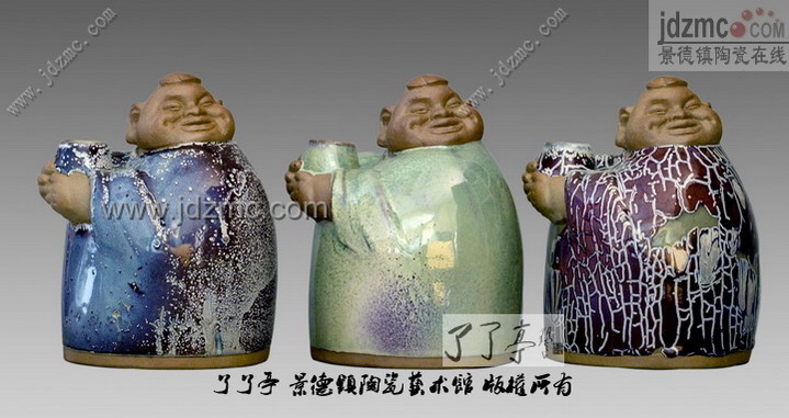 孩童喜悦的捧着出窑的瓷罐也正是作者对每次窑变的无限期待和那一份最质朴的陶艺情缘。作品在火的陶冶中成就了泥、釉、火的传奇。