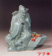● 七 现实之路开拓的浪漫情怀 新中国的建立,使许多身怀绝技的老艺人绝处逢生。景德镇在20世纪50年代就组织这些“国宝”级的民间艺人投入瓷都的生产建设,在生活待遇和创作环境方面对他们给予足够的重视和关爱,并组织他们前往北京、上海等地观摩学习,发挥瓷业名家的专业才能,拯救景德镇面临绝迹的传统技艺,培养新型的后续人才,研究开发符合时代要求的艺术作品。在此种精神的感召下,景德镇一些有名望的瓷雕艺人从私家作坊走进了研究机构和高等学府。另外,市政府集中了景德镇相关陶瓷雕塑业的个体作坊、美术社、雕塑社、试验厂,组建了行业性较强的雕塑瓷厂。这样,景德镇陶瓷雕塑形成了一个集研究、教学、生产为一体的科学体系,为繁荣陶瓷雕塑创作注入了勃勃生机。 在新的创作环境中,景德镇的瓷塑老艺人焕发了艺术青春。他们有的思想开明,不以名家自居,虚心好学,在传统雕塑技艺的基础上,善于接受新的雕塑创作观念、新的表达形式,创作了诸如《《中馗试剑》(图6)一类的以块面组合为形式语言的传统题材的陶瓷雕塑作品;有的虽恃才自重,却能无私地将毕生苦心研习的传统雕塑绝技毫无保留地传授给青年学子,并培养了一批专家、教授、国家级的工艺美术大师,使景德镇高超的瓷塑传统技艺得以发扬光大。 值得一捉的是,1956年,在周恩来拯救民间文化遗产的号召下,“泥人张”第三代张景祜先生携高足郑于鹤来到景德镇,与景德镇老艺人曾龙升共磋技艺,历时两个多月合作了《昭君和番》、《红线盗盒》、《将相和》、《史湘云》、《苏武牧羊》、《木兰从军》、《林鲁会》等传统历史题材的戏曲人物雕塑。这对景德镇大力恢复传统民间雕塑技艺无疑起了一个推动作用,同时也影响了后来逐渐成名的曾山东、何水根、蔡金标等民间艺人。20世纪50年代中后期一些有志于景德镇陶瓷雕塑事业的大学毕业生,放弃留校任教的优越条件,从中央美术学院等国内知名专业院校纷纷来到百废待兴的景德镇,开始陶瓷雕塑的教学创作生涯。他们的介入,给景德镇注入了新鲜的学术空气,带来了全新的审美意识。特别是在1958年创建了景德镇陶瓷学院并设立陶瓷雕塑专业,聘请瓷塑老艺人蔡金台和瓷塑装饰老艺人洪爵煌担任传统雕塑创作和装饰课教师,同时迎来了中南美专毕业的尹一鹏、浙江美术学院毕业的毛龙汲,教授西洋雕塑基础及创作课。从此,西方雕塑观念与中国传统雕塑技法在景德镇融为一体,并驾齐驱,互为能动地展开了景德镇陶瓷雕塑创作的新局面。 “百花齐放,推陈出新”,“走现实主义与浪漫主义相结合的道路”,是新中国倡导的文艺方针。在这种精神的召唤下,景德镇的陶瓷雕塑创作呈现了生机勃勃的面貌。特别是过去以仙道神佛题材一统天下的创作格局,被越来越受到重视的现实生活题材所打破。火热的生活、奔腾的激情,促使陶瓷雕塑艺术家创作热情高涨。工农兵形象、少数民族歌舞形象、英雄业绩形象、历史故事场面、革命摇篮风景、有趣的动物造型等,成了新时期陶瓷雕塑表现的主题。这一时期的陶瓷雕塑以独立的圆雕为主,浮雕次之,雕塑造型均为写实,许多釉彩装饰作品反映的多是当时昂扬向上的精神面貌。 《披纱少女》(图7)创作的成功源于1958年从法国带回的一块精致的裸女披纱瓷板,有关部门开会号召仿效这一技法,以填补景德镇陶瓷雕塑上的这一空白。当时,年轻的周国桢自荐承担此项任务,经与工艺人员的多方合作,终于创作烧制成功以《红绸舞》瓷盘为标志的色釉披纱装饰作品。接着《披纱少女》的作者何念琪,独辟蹊径,创制了与真纱巾相仿的瓷质饰彩纱巾,并通过艺术与工艺的结合使小女孩那种天真活泼、娇稚可爱的甜美形象得以展现,至今仍被人们所珍爱,被誉为是“一次超过世界艺术水平的成功创作”。王雪茹《八只卷毛猫》的同期问世,又是景德镇陶瓷雕塑界的一件大事,因为它集中了集体的创作智慧,目的是与国外同类工艺瓷相媲美。这八只卷毛猫以其造型准确、体态各异、神情生动、灵巧完整,充满拟人化谐趣的艺术表现手法赢得了国际声誉。周国桢的《芭蕾舞》创制,在景德镇也是前所未有的一项创举,因为这件作品的所有重心全靠一只脚尖去承担,并未有其他支撑物,这种悬而又险的烧成难度,被大胆的创新精神和高超的技巧所攻克,创造了陶瓷雕塑新的表现语汇。曾山东创作的《雷锋半身像》,以其艺术性、工艺性,开启了陶瓷人物塑像以涩胎表现人物形象的先河,被当时的《美术》杂志发表在封面上予以宣扬。曾龙升为人民大会堂江西厅创作的《天女散花》以非常传统化的手法,精巧高妙地创作了天女美好娇艳的形象,受到了当时全国美协副主席蔡若虹、中央美术学院院长吴作人的高度评价,再次为景德镇古老的雕塑艺术增 添光彩。 实用雕塑创作也是这一时期的一个特点,如文房四宝、台灯、壁钩、筷筒等,其中尤以台灯品类居多。创作群体有民间艺人、教师、学生及科研人员。创作题材有戏曲,如黛玉观书、凤求凰;有现实生活内容,如大跃进、收玉米、保育员;有传统故事,如盘龙、洛神、天女散花、鲤鱼跳龙门等等。装饰上多釉色点彩和粉彩,充分反映了当时人们的审美要求。在当时,集体创作的组织形式已成为景德镇陶瓷雕塑在特定环境下的新鲜事。这种行为有成功的