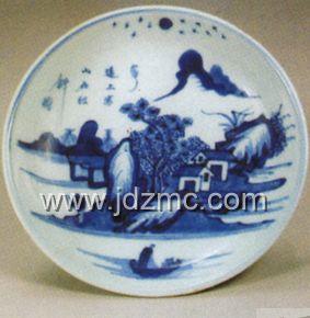 清代以后以青花彩瓷为主流的文字装饰,或与画面相呼应,或成图案化,都能产生艺术魅力。康乾盛世,国运昌明,社会风气热衷科举,学子苦读博取功名,期望“学而优则仕”。德化山区小县,“士风在宋政和而后称极盛……”。一时间,励志、劝学、进仕、教子之类题材纷纷涌现,自然跃入陶瓷师傅的作品里。“平生意气当天高”、“咬得菜根百事可为”、“月中丹桂连根拔,不许旁人折半枝”等激励文句,常见于青花、五彩盘、碗、灯、砚、笔筒等器,反映莘莘学子努力考取功名的情形。一件清代青花盘铭文“春游芳草地,夏赏荷花池,秋吟菊花酒,冬咏白雪诗。” 图5 ,四季宜人,使人品味无穷。