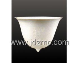 3、榜书、口号类:依酱铺、盐号、酒肆、油坊、药行等商贩业者要求制作容器,注明商号,清末民国渐成风尚。为反抗日本侵略,抵制日货,唤醒民众,鼓舞斗志,在日用瓷茶具、茶壶、碗盘、灯具等,及办公瓷笔筒、砚盒、镇纸等上印写“中华国货”、“倡导国货”、“抗日到底,保国安民” 图3 等热血标语口号,激发了广大同胞的爱国热情,表现出民族气节和精神。三、文字装饰的艺术魅力依托瓷件的釉质、造型、功能进行文字装缀,起到了画龙点睛和深化艺术意境的效果。梅花杯是明代德化窑首创的独特产品,做工精致,集艺术性、观赏性于一体,弥足珍贵。广东省博物馆是国内收藏德化窑瓷器最多的文博单位之一,在其珍藏中,各类德化白瓷有一千余件套 。仅明清两代烧制的,小巧玲珑、晶莹剔透,呈“猪油白”或“象牙白”色梅花杯、爵形杯、梅鸟杯、玉兰杯、公道杯就有数十种共二百余件。此类瓷器民间泛称梅花杯。在梅花杯上刻划诗句以行酒令居多,少有雷同。如“兴来相对酌”、“明月几时有”、“名酒对花倾”、“长安市上酒家眠”,等等,不论是劝饮与祝酒,都洋溢着淳朴的民风,散发着浓郁的千年酒香。福建博物馆一对明代德化窑白釉三足杯,外壁阴刻草书“君拍手我高歌,且敬酒莫辞多”、“但得酒中趣、莫为行者传” 图4 。既工于造型优美,又讲究实用情趣。
