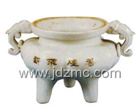 2、诗文类:德化工匠也喜欢以诗文或长歌短句装饰瓷件,抒发他们追求美感的内心世界,就诗文施于瓷件的器类和图案而言,可粗略分为以下几种: