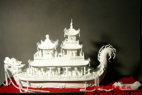 “雕虫小技”这句成语似乎颇含贬意。我孤陋寡闻,也不知这一成语出自何典,但以自己从事陶瓷雕塑创作30余年来的体会来谈,却深切感到即使是“雕虫”也决非易事,更何况从事“泥做火烧”的陶瓷雕塑,没有锲而不舍的探索,没有开拓创新的追求,那能获得一件体现美感和新意的瓷雕精品? 家父张新喜先生在20年代追随镂雕一代名师徐顺元老先生学艺,从家父的训导中得悉顺元公天资聪颖,在瓷雕中另辟蹊径,锐意创新,花鸟虫鱼在他的手中雕捏得栩栩如生,在瓷苑中创立了一个新的流派。我自幼随父学点“雕虫小技”,且有幸得顺元先生的指点,从中也悟得一点创新的甘苦。 顺元公在40年代曾忽发奇想,执意要创作出一件大型素胎瓷雕龙舟。旧社会一个小作坊的艺人,资薄力单,要作此创举,谈何容易?然而对于一位对“火的艺术”执著追求,勇于攀登艺术高峰的民间艺人来说,在制作过程中尽管常有断炊之累,顺元公也矢志不移,经过长达一年的雕塑这件艺术精品终于成型。据家父言及此龙舟构思恢宏制作精美。当时限于烧炼条件龙舟分三截组成,组合之后,犹如鬼斧神功,极具东方民族的神韵。令人痛惜的是,由于烧炼时倒窑,这件尚未问世的“巨龙”竟葬身火海,成了瓷史中的千古憾事,顺元公也因“石破天惊”的意外而神志不清,从此终日疯颠。之所以日后常常自称为开天辟地的“盘古”,且常在山上盘桓,其缘由盖出于此。 50年代中期家父张新喜等应曾龙升先生之邀请合作制作大型龙舟。龙舟的制成,是雕艺的一大突破,也了却了徐老前辈的夙愿,是极堪欣慰、值得大书特书的喜讯。能制成一件气势磅礴的大型龙舟,当然值得庆幸,然而我常思索:能否以小取胜,在精细上、构思上下功夫,创作出一件具有浓郁东方特色的、另一种气韵的龙舟?我的设想得到了家父的认同,于是在70年代初,我设计了一件长85公分、高40公分,采用镂空特种工艺制作的中型龙舟,舟内配以古典文学名著《西厢》的人物场景,力求整体上典雅古朴。由于舟体较小;增加了镂雕的难度,舟上阁柱盘绕的龙风、舟内人物、陈设等等制作都要求精细,尤其是窗帘的镂空细如针尖,达到了较好的艺术效果。此件现陈列于北京人大会堂江西厅内。 “大”与“小”是对立统一的。俗话说; “大有大难,小有小难”。 “大”的作品如果是雄浑神奇, 当然是上乘·之作,“小”的作品如果玲珑剔透,难道就应贬为“雕虫小技”?我认为创作中的“之最”说,往往被一些人所误解。有的人在创作中刻意追求作品的体积,那怕只要比前人的作品长一公分,也认为就是什么突破,认为越大才越是艺术的尖端,才是什么世界“之最”,以至有的作品既失去使用价值,也失去了观赏价值。殊不知在陶艺中以小也能取胜.我想在对待造型的大小问题上不应失之偏颇。说实在话,我创作的中型龙舟从总体上看,仍嫌其失于精巧。前年日本陶艺界的一位朋友来景时,曾希望我设计一件更小一点,更精致一点的龙舟,遗憾的是我至今仍未开始设计制作,但我愿朝此方向努力。 顺元公以捏雕花草虫鱼、浮雕人物山水、镂雕亭阁见长,为世人所公认。我曾见过先生的一件早期作品: 《鱼藻水浅》,水浅内的两条鲤鱼,长不足二公分,却雕塑得至为轻松简洁,活泼清新,精美绝伦,达到了极高的境界。据我所见所闻,顺元先生制作的蟋蟀常置于精细的花筛之中,饶有情趣,反复视之,令人陶醉。我也曾仿效而为之,配以秋菊,或曰“知音”,或曰“秋韵”,得到观者的认同。齐白石先生留有遗训,大意为“学我者死”,我体会先生的意思是:师承固然重要,然而固步自封,拘泥于先辈的一划一钩,而不思创新,则仿效者无异于走进了艺术的死胡同。 如何使草虫更赋于艺术的生机?如何能写意传神、刀畅神触,使草虫更妙合天趣?是我苦苦思索而一时无法解答的难题。我曾在年青时创作过“济公与蟋蟀”的雕塑作品,但结合得颇不自然,总觉得有牵强之感,我为此而感到困惑。感谢朋友的启迪,看了名著《聊斋志异》中的《促织》篇后,使我萌发了创作《蟋蟀斗雄鸡》的意图。一只精疲力尽的公鸡,沮丧地摔倒在地上,鲜红的鸡冠疲软地向一边倾斜,而一只得胜的蟋蟀则紧紧咬住鸡冠在振翼高鸣。这样一来,丰富了作品的内涵,也似乎赋于蟋蟀以新的意念,增添了力度与动感。 我不知道这一创作是否成功?但是我想:一个雕塑工作者不应死死抱住传统的手法不放,而要在文学及其他一切姐妹艺术中吸取营养,在丰富多彩的生活中捕捉新的意境,师古而不泥古,才能拓宽思路,寻觅到艺术创作的永不枯竭的源泉。 无刀具镂空工艺历史不长,据我所知,这一新工艺始创于顺元先生。当时采用这一工艺制成的花筛都很小,其圆口直径约为7—10公分,瓷质不白,全是素胎,更未采用色釉装饰。