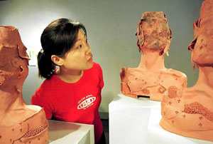 下图是陶艺家王长平的作品《秀》,他以女性的鞋为题材, 那么作为一男性艺术家, 他的作品有许多都是以女性元素为他的题材的,这是不是在告诉我们女性题材的陶艺越来越被人们关注。而以女性的鞋为题材作品不在少数,,在我这看来这些鞋被人关注并不是鞋子本身漂亮,而是鞋的背后“自我摧残”。这是我们都看的习以为常的事了,但是要把它放大,就直得我们去思考了。王长平以自己的角度创作出不少让我们对女性文化加以思考的作品,从而也为当代中国女性陶艺添砖加瓦。 每种艺术都有它自己的强调重点, 都有其特殊性的表现, 这一点为当代中国女性陶艺的存在提供了理由。. 从以上论述中不难看出女性陶艺有着自己存在的理由和独具一格的审美理念,它不再追求美观与实用性, 更多的把目光投向阶级、性别、家庭、身体和心理欲望等众多领域,试图呈现出不断变化中的女性身份。也因此女性陶艺才被越来越多的人重视。 四、结 语 中国的陶瓷艺术有着悠久的历史, 在几千年的发展演变中体现着不同时代人们的审美意蕴。女性陶艺是以女性—特征为主的陶瓷艺术, 当代社会审美的多元性给女性陶艺创造了一个自由发挥的空间。 以自己独有的观察方式和表述形式来表达自我, 让更多的人能够深层次地了解女性, 无论是忧伤、愤怒、浪漫、欲望、亲情、厌恶抑或是哲理。正如俄国著名表现主义作家托尔斯泰所说的那样: “艺术是这样一项人类活动 :一个人用某种外在的标志有意识地把自己体验过的感情传达给别人,而别人也会为这些感情所感染,体验到这些感情……”。
